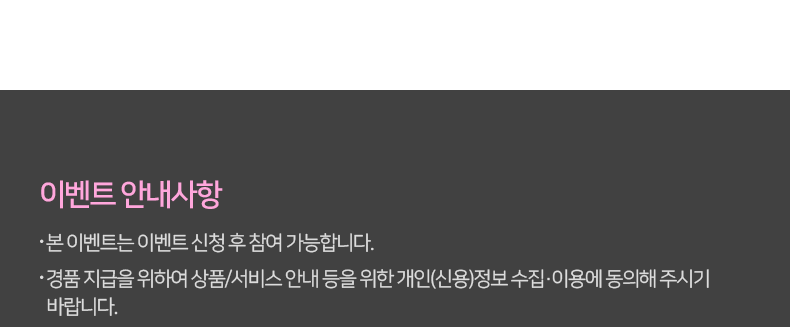 - 경품 지급을 위하여 상품/서비스 안내 등을 위한 개인(신용)정보 수집·이용에 동의해 주시기 바랍니다.