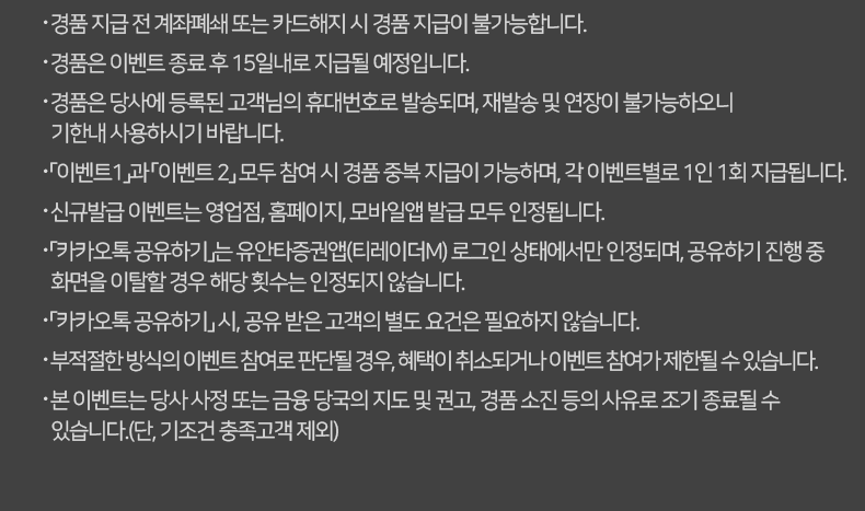 - 경품 지급 전 계좌폐쇄 또는 카드해지 시 경품 지급이 불가능합니다.