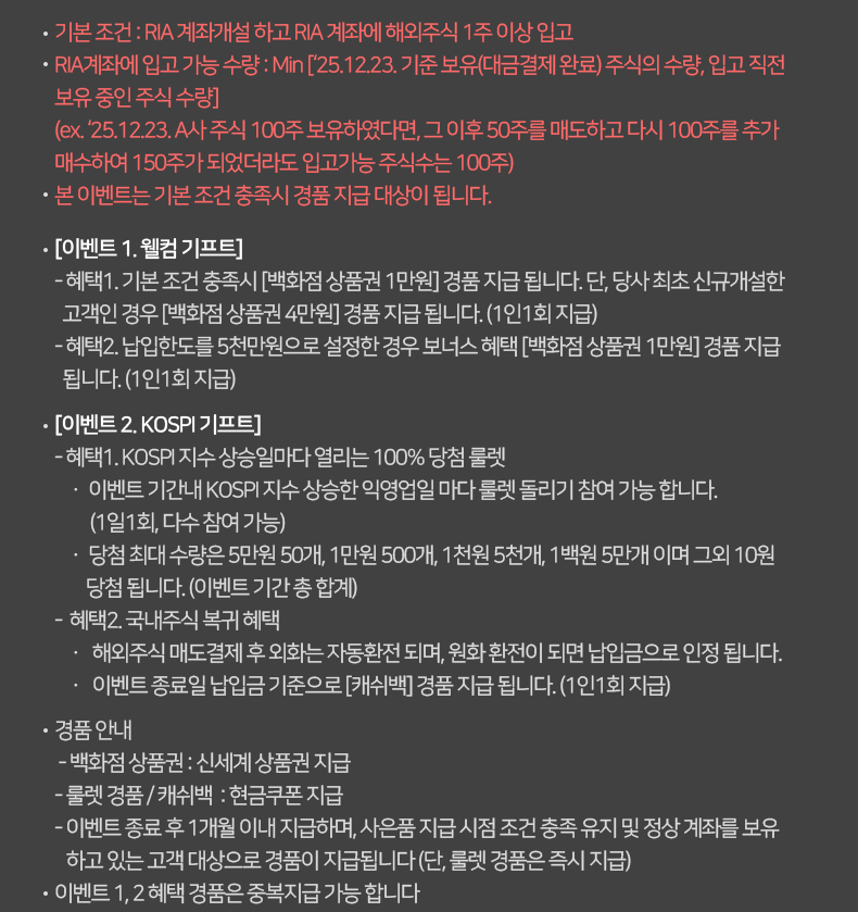 - 대상 : RIA개설 & 해외주식 1주 이상 입고한 고객 (25년12월23일 기준 보유 주식)